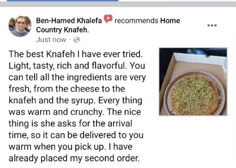 Here’s what our customers have to say after trying Home Country Knafeh:
